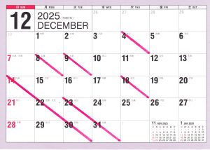 2025年12月の休業日をご案内しますので、ご予約前にご確認ください