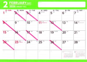 2026年2月の休業日をご案内しますので、ご予約前にご確認ください
