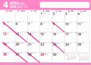 2026年4月の休業日をご案内しますので、ご予約前にご確認お願いいたします